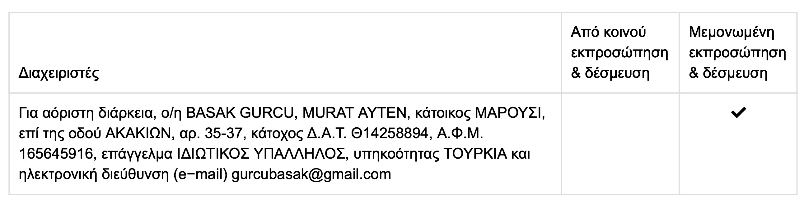 εξώδικη εκπροσώπηση της εταιρείας ανατίθεται στον/στους: